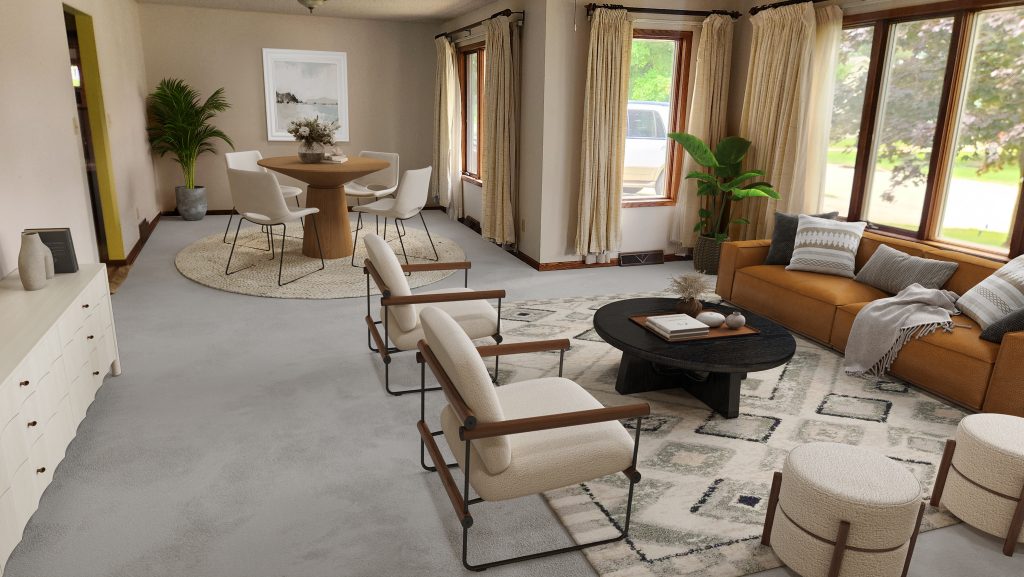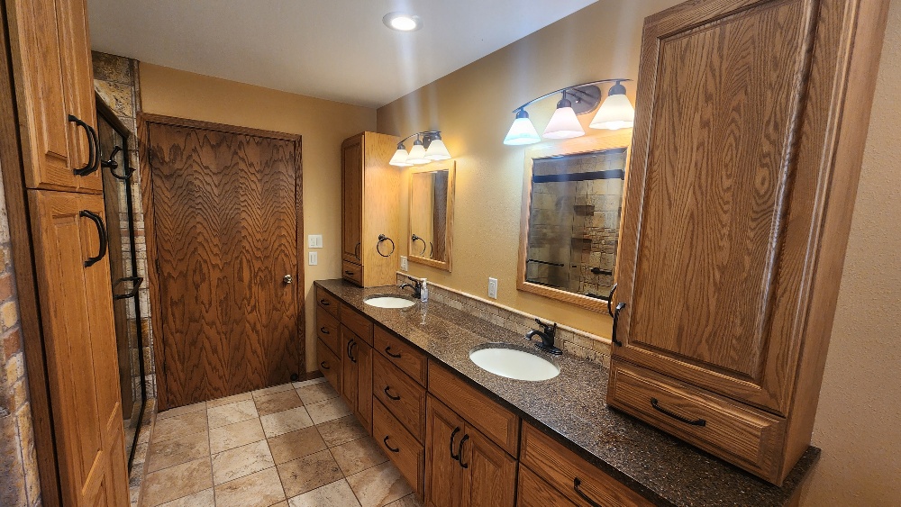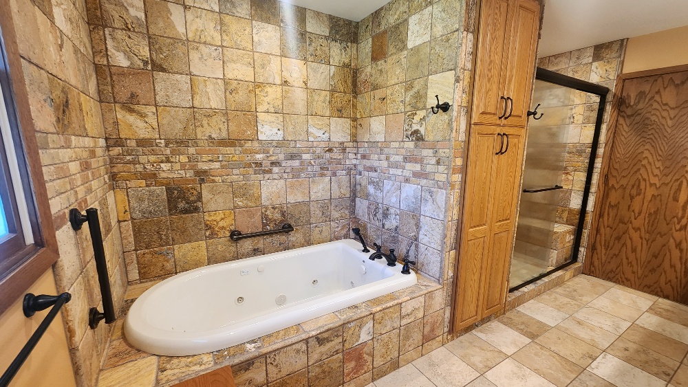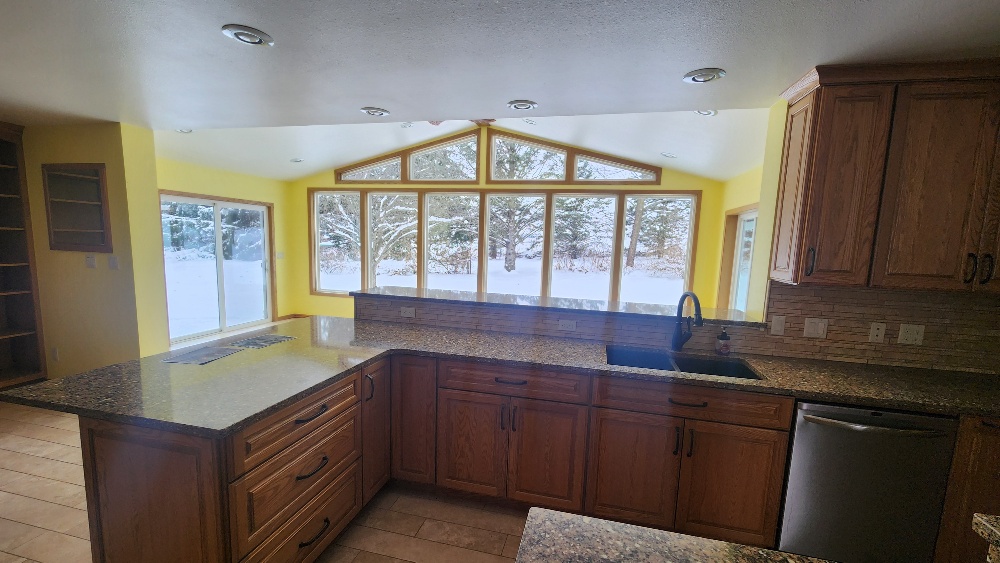 Serenity awaits in this spacious home with incredible views. Imagine peaceful evenings in this stunning, remodeled home, where a wall of windows perfectly frames sweeping farm field views and abundant wildlife sightings. The heart of the home is a vaulted great room that flows seamlessly from a beautifully appointed, gourmet kitchen. Here, you’ll find ample solid-surface cabinetry, an under-mount sink, and high-end built-in appliances. Escape to the luxurious main-floor bath, a true spa-like retreat featuring a spacious walk-in tiled shower, double lavatories, and a jetted soaking tub for ultimate relaxation. Enjoy the convenience of a main-floor laundry room positioned perfectly between the kitchen and the oversized, two-stall attached garage. The partially finished lower level offers expansion possibilities with a family room, a non-conforming 4th bedroom, and plumbing for an additional bathroom. A unique second staircase from the basement to the garage provides unmatched convenience. This 2,256 square-foot main level provides plenty of space for both everyday living and entertaining.